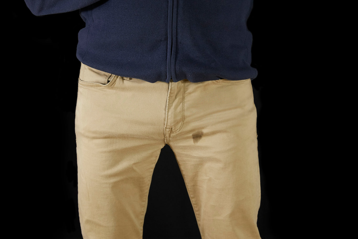 Post micturition dribble (PMD). AKA: the pee spot. What they didn't teach you in high school Health & Phys. Ed.